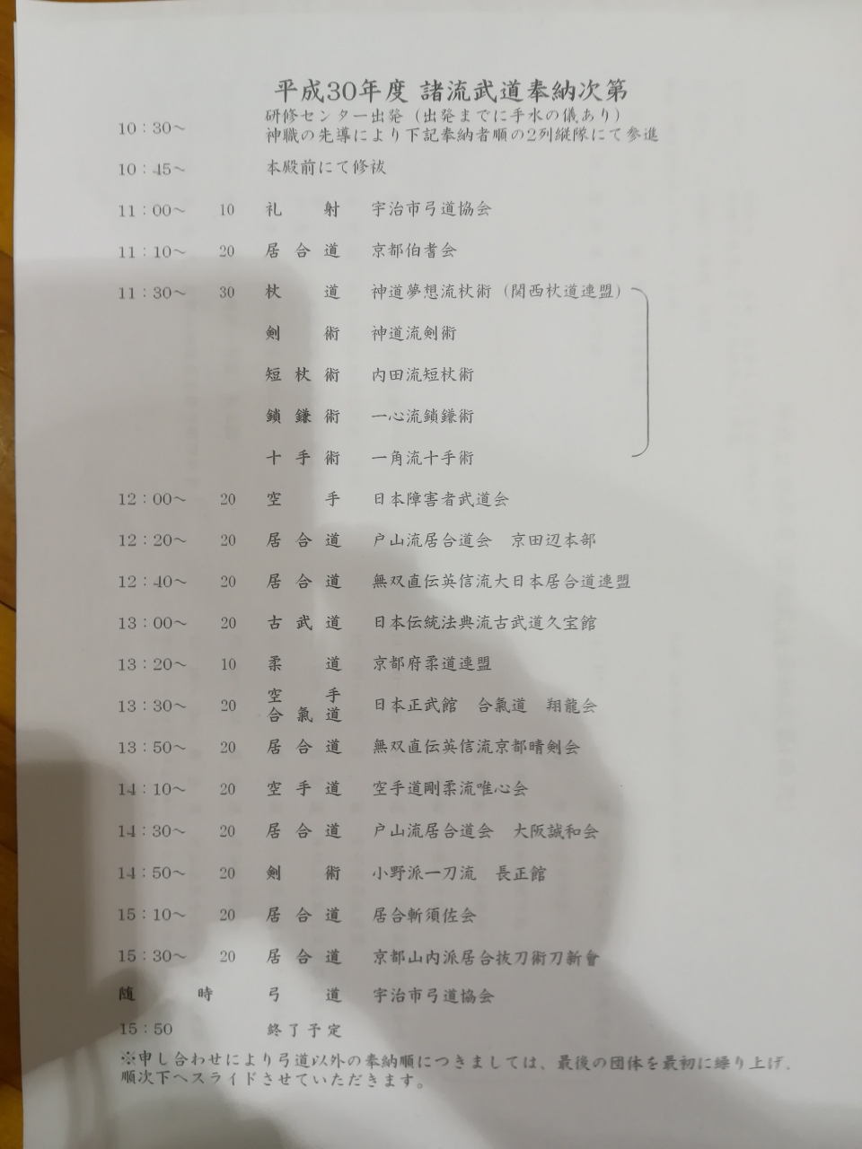 29日は長良天神にて奉納演武がございます。 また他支部の先生方剣友の皆様にはお世話になりますが宜しくお願い致します。 今回は開始時間がちょっと早くなりましたが起きられるかな?