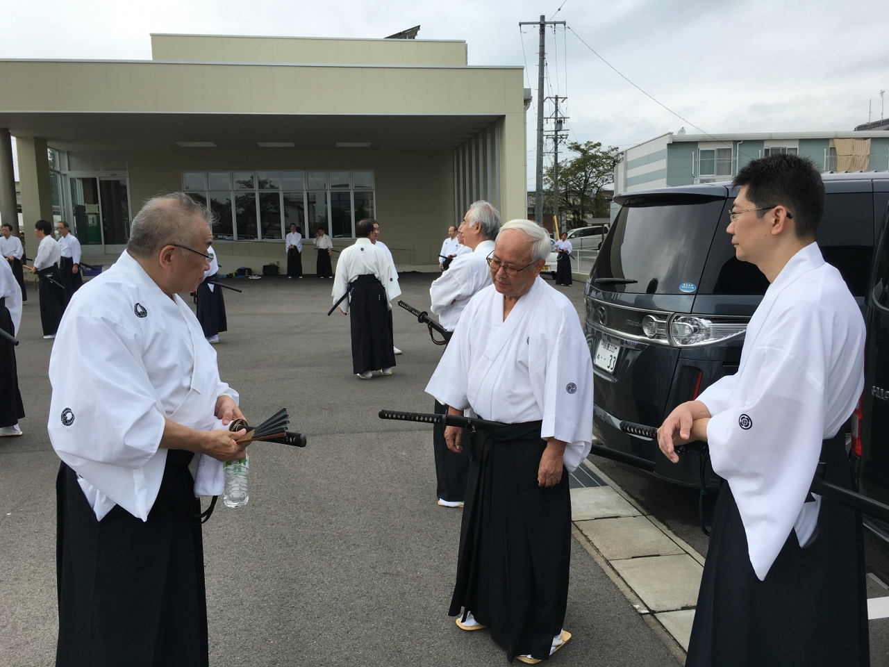 関市刃物まつりが開催され、京都支部からは7名の剣士達が関市保険センター駐車場に集いました。