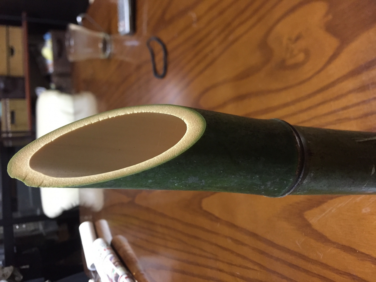 母に一番よく切れたと思われる竹を見せたところ、今年の正月の飾りに使おうと言ってくださり、竹取翁の気分です(てきとう)