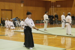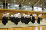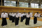 桜舞う石清水八幡宮に於いて、誠和会・浪花支部・京都支部合同で奉納演武を行いました。この日は生憎の雨天となり、室内での開催となりました。