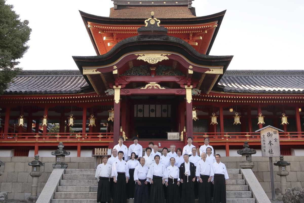 開始直前に雨天から青空となった石清水八幡宮の桜祭り武道祭にて演武を行いました。